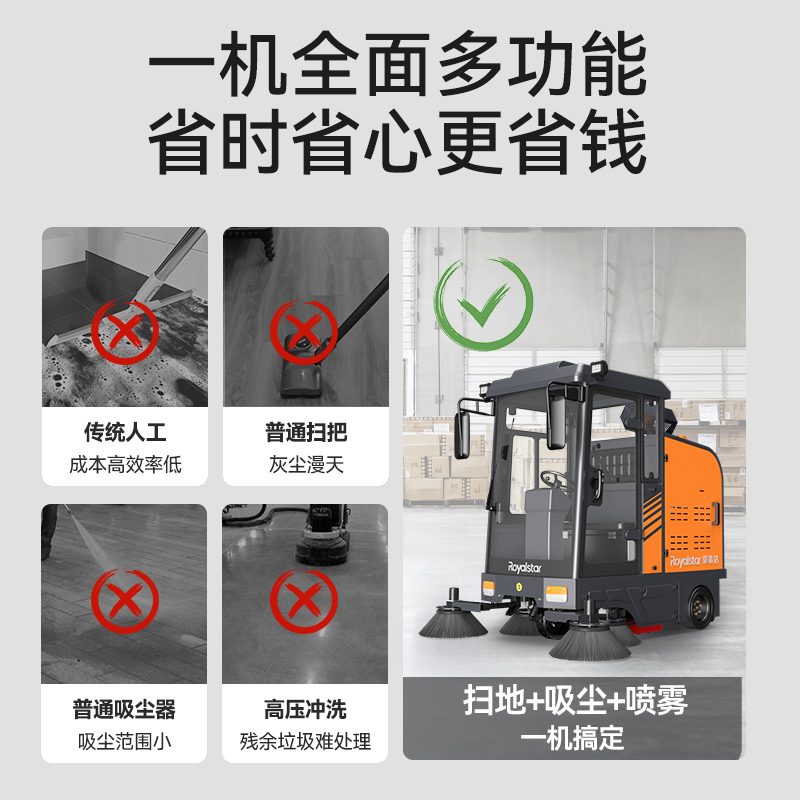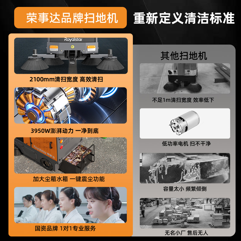 一臺(tái)榮事達(dá)掃地機(jī)可節(jié)省約16-18人勞動(dòng)成本,4-5h超長(zhǎng)續(xù)航,21000㎡/h清掃效率,2100mm清掃寬度,強(qiáng)勁...